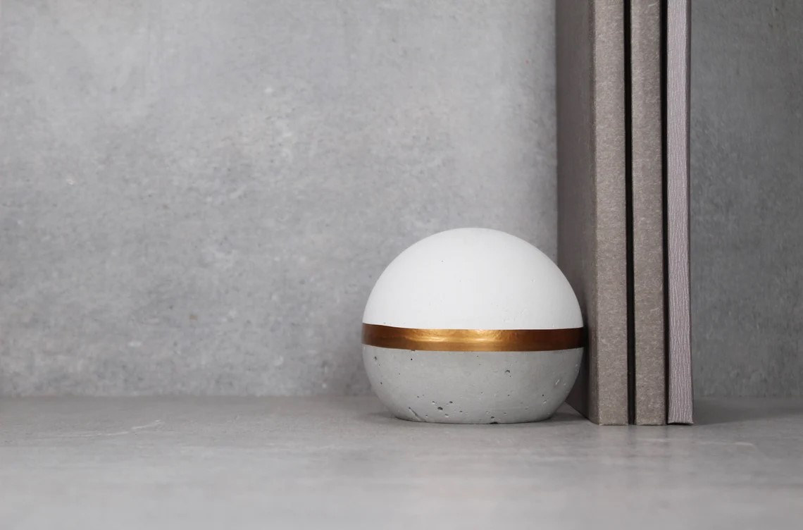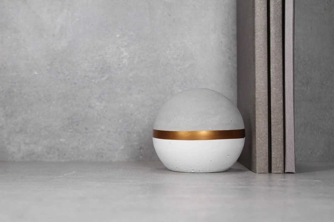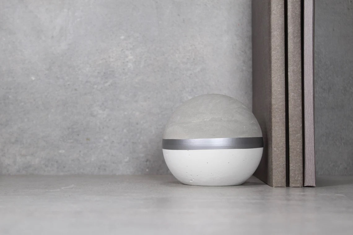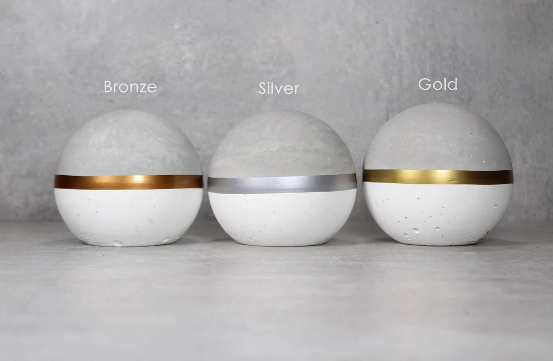 This product is made with concrete in different colours (not painted from the outside). The item needs a few days to be finished because each different colour of concrete is layed out seperately from the other colour and needs a few days to dry. To help the different layers of concrete stay together I use small metalic parts.