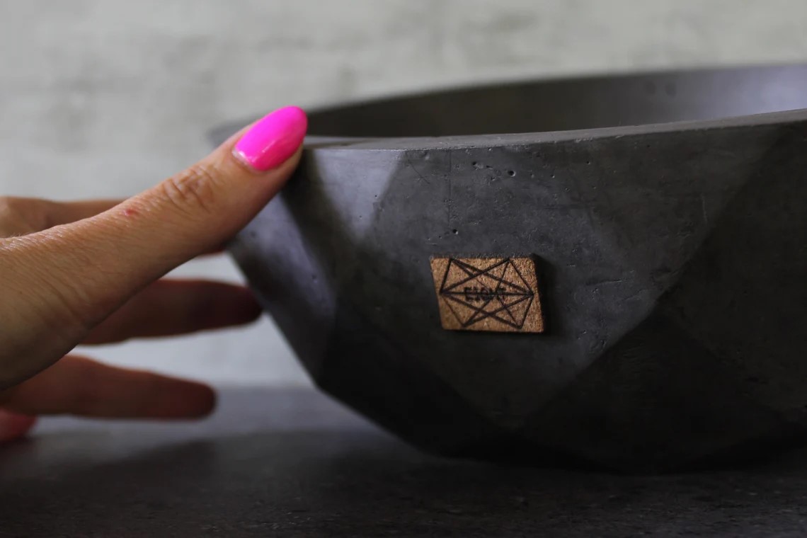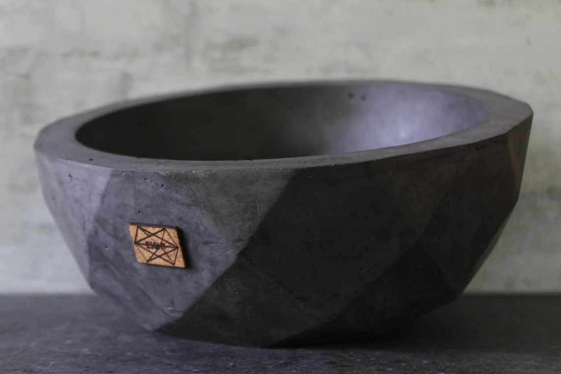 This listing is for handmade and heavy-duty concrete diamond bowll by EightPlusE.