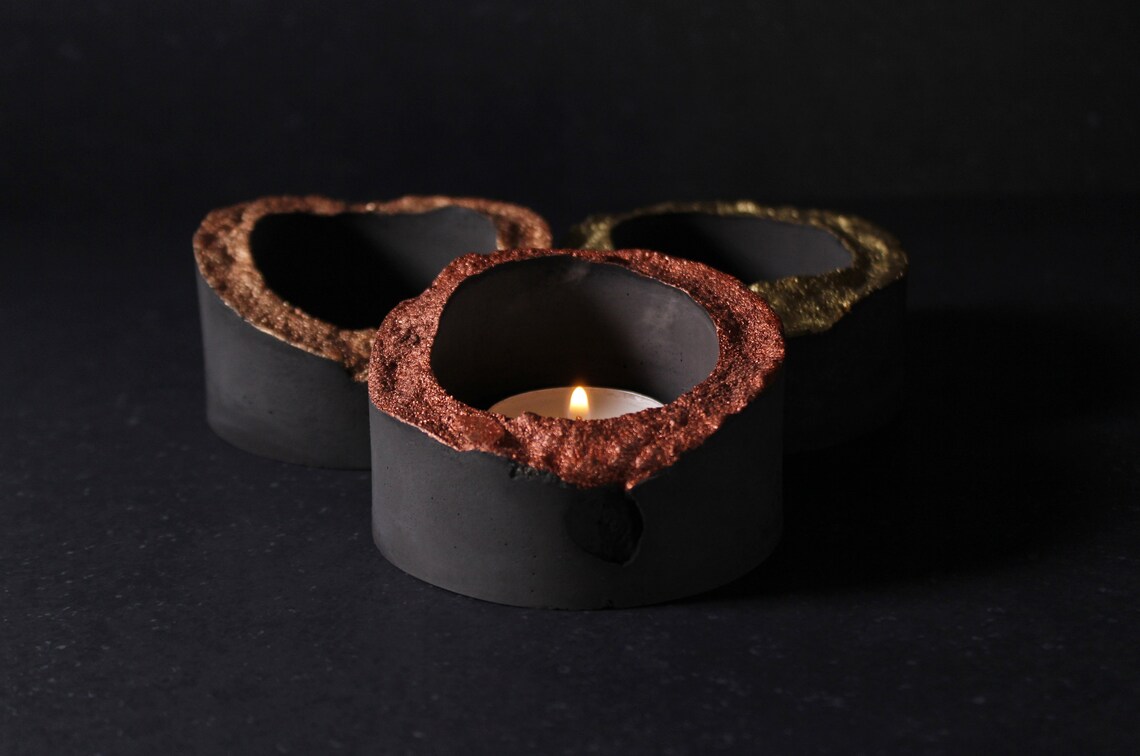 This listing is for beautiful concrete candle holders by EightPlusE.