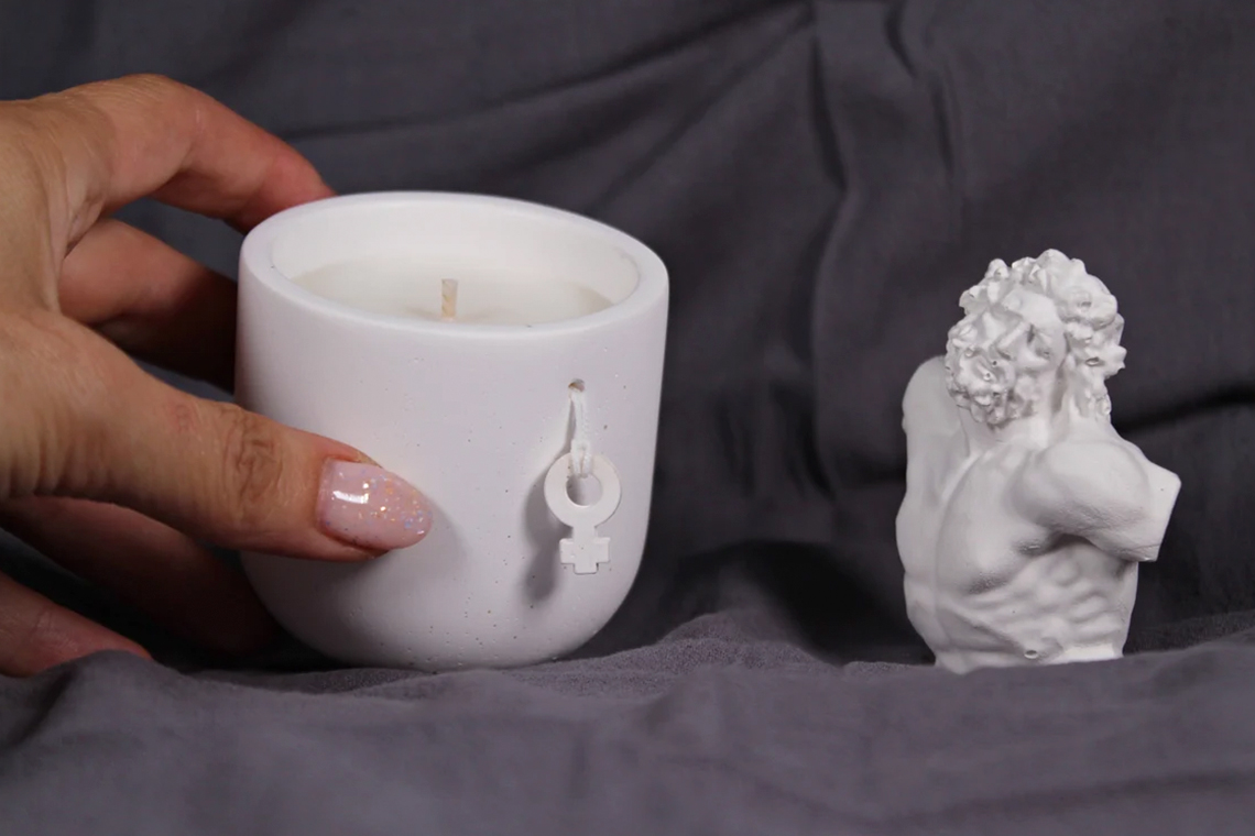 Captivating soy candle 'V E N U S' by EightPlusE.