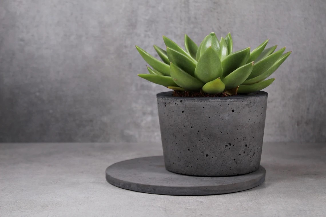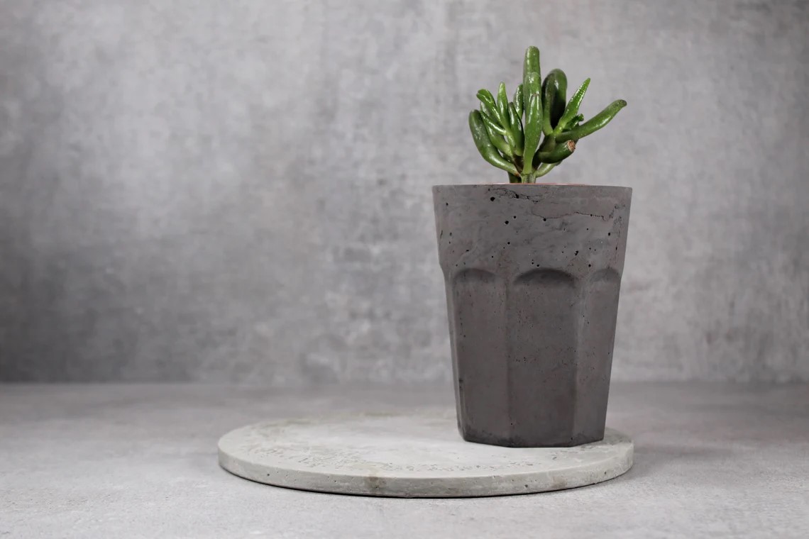 Strong concrete construction and smooth finish. With cork on the bottom.