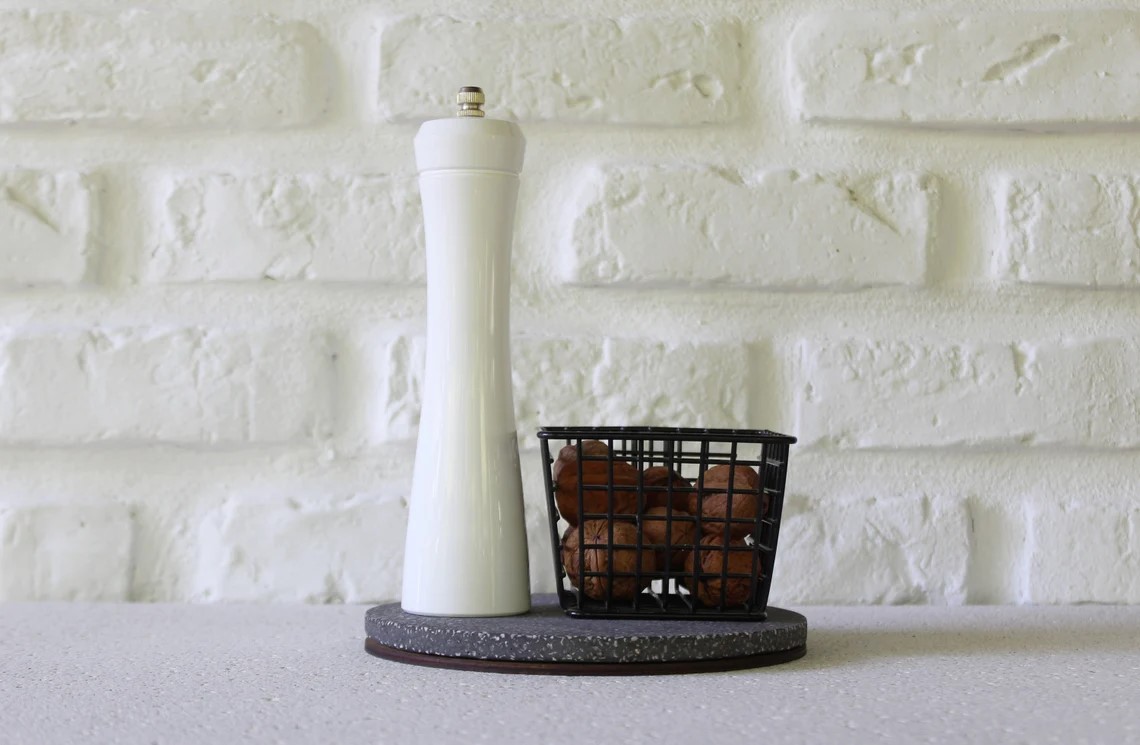 This listing is for Large mosaic concrete coaster with wooden bottom by EightPlusE