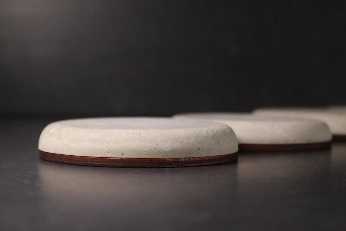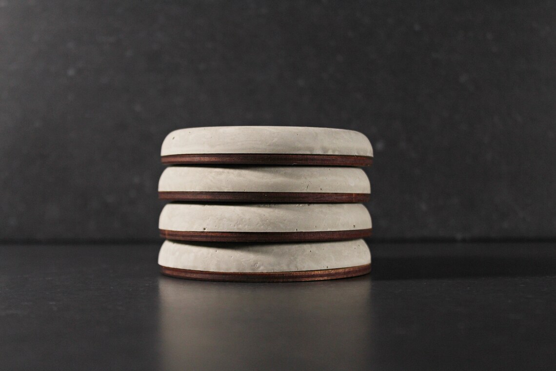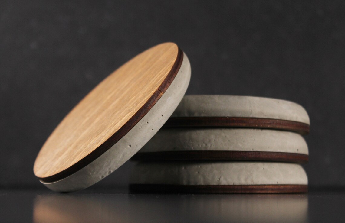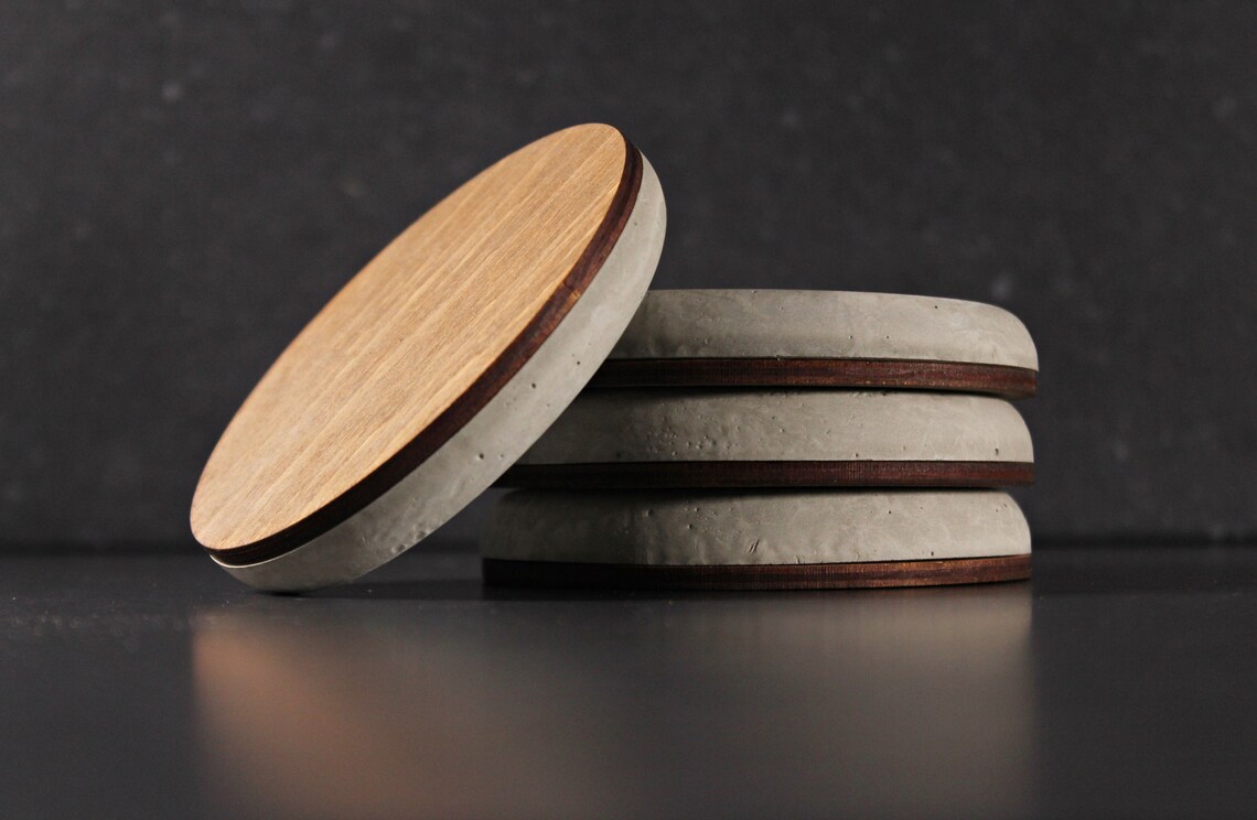 This listing is for Round Concrete Coasters with Wood by EightPlusE