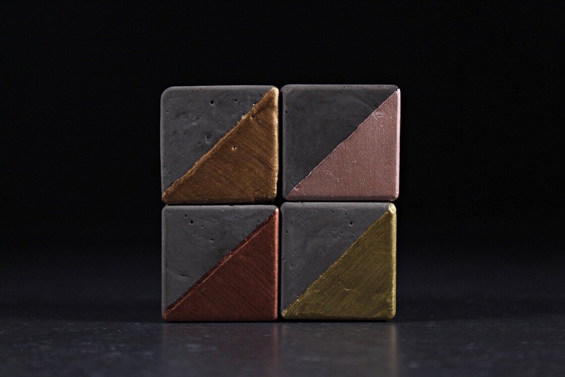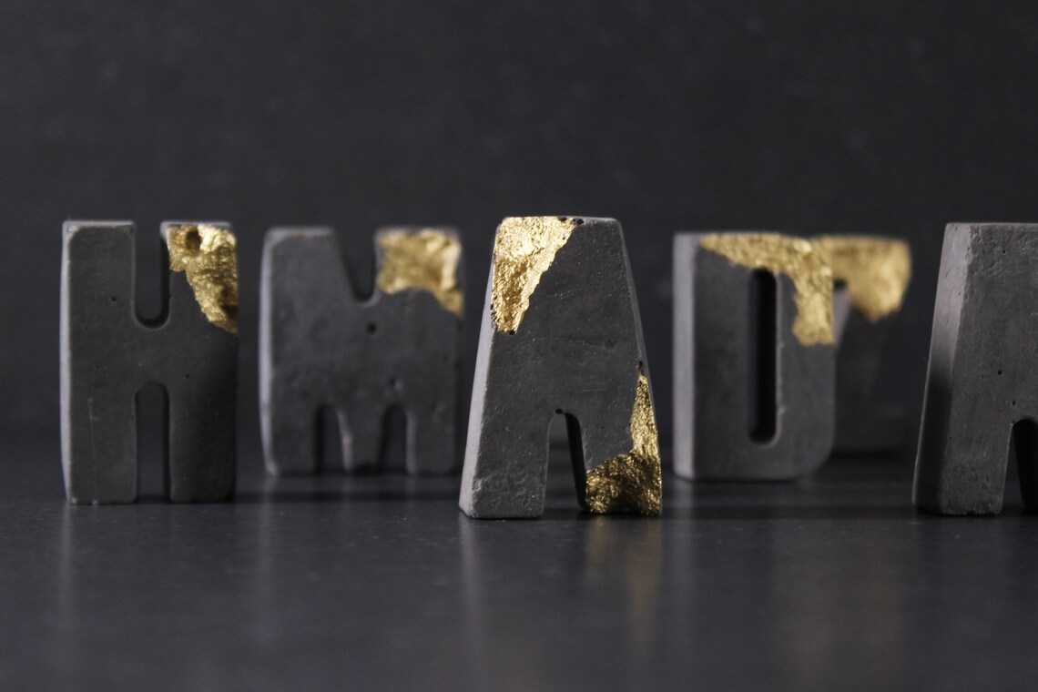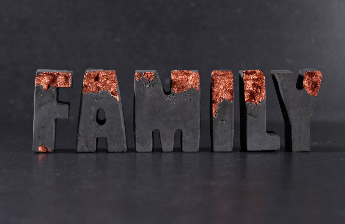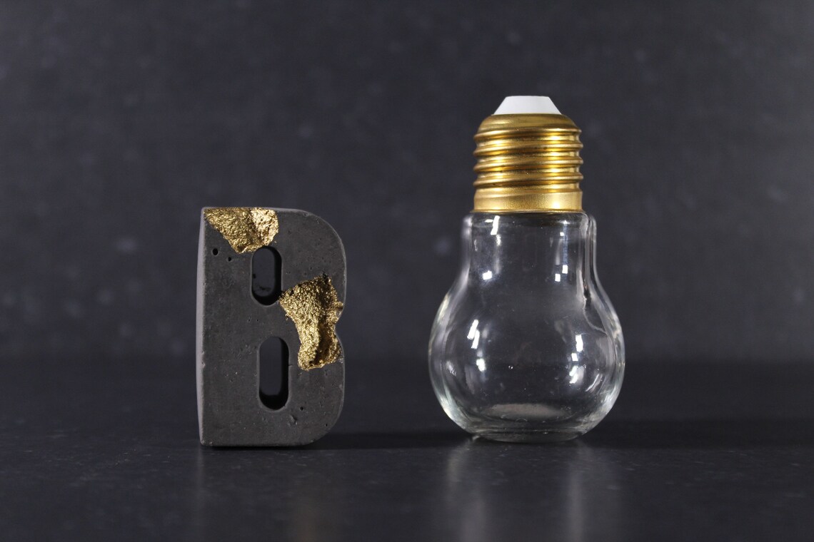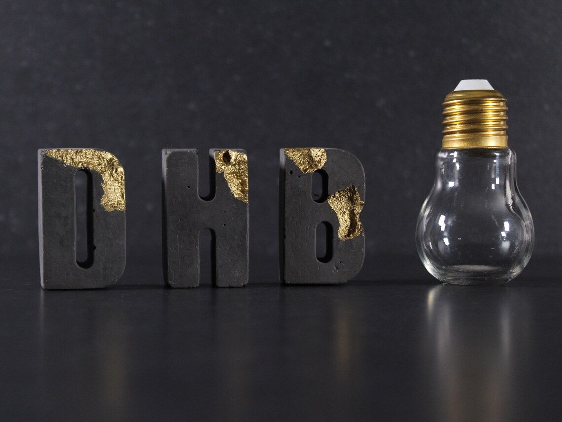 Charcoal relief concrete letters with gold by EightPlusE