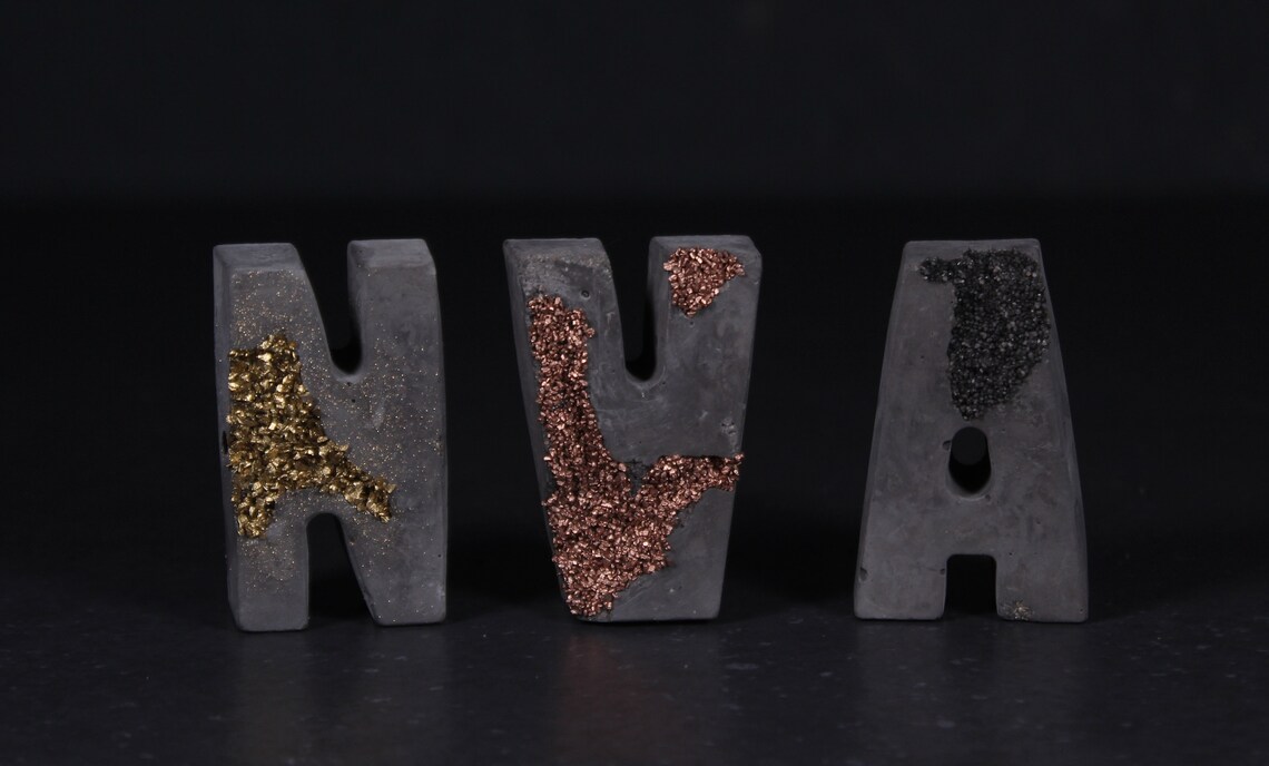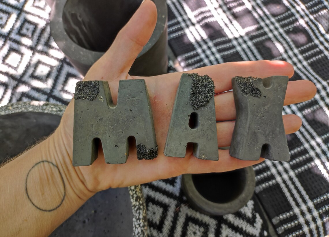 Personalise your own words or phrases using these hand-cast little concrete letters.