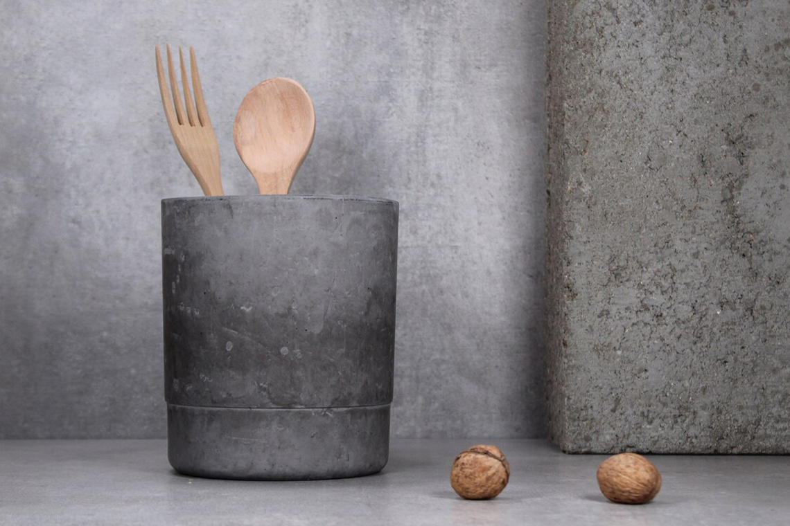 This listing is for beautiful concrete utensil holder by EightPlusE.
