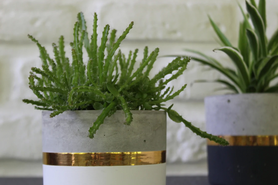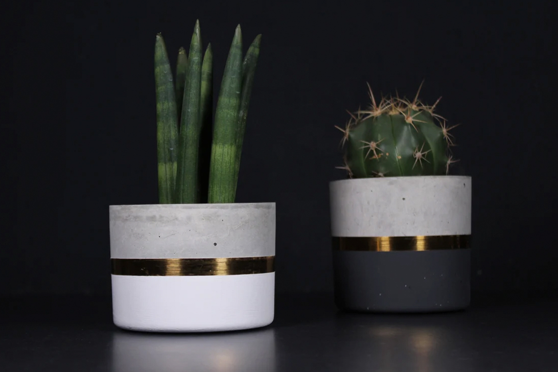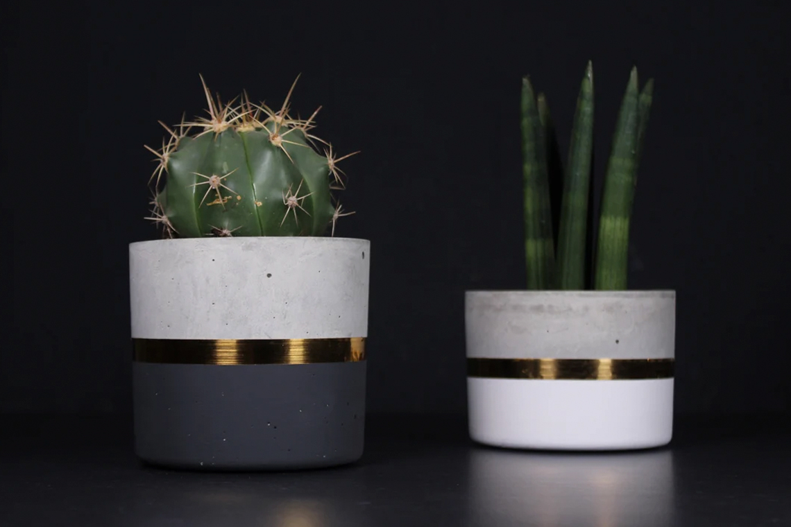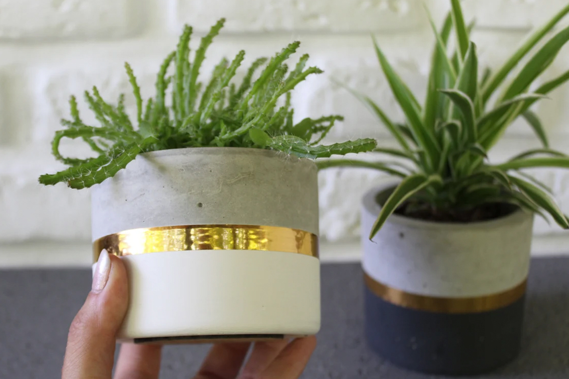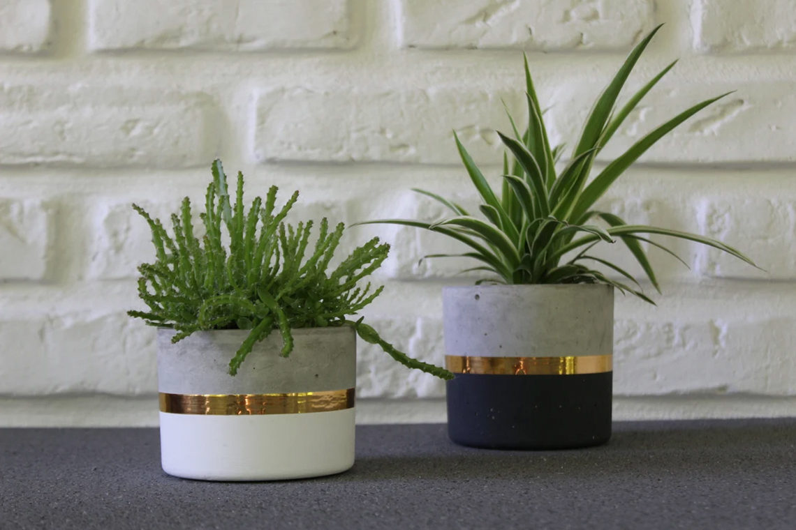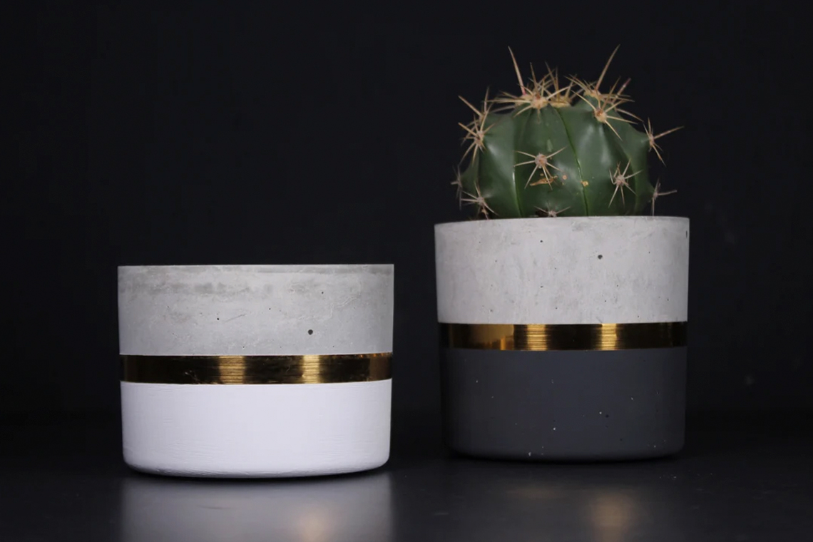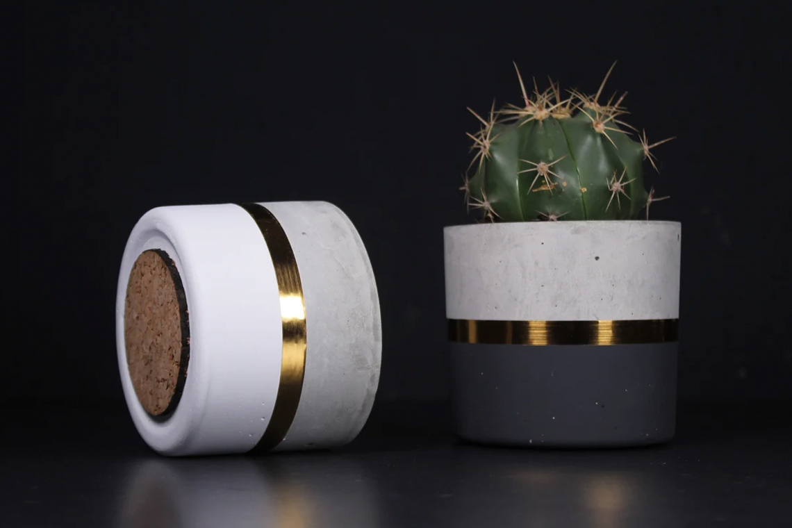 This listing is for Two tone concrete pot with gold ring by EightPlusE