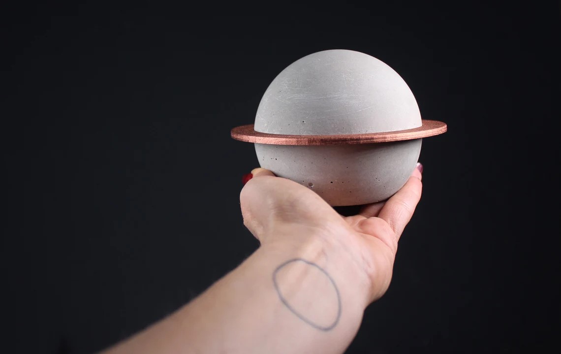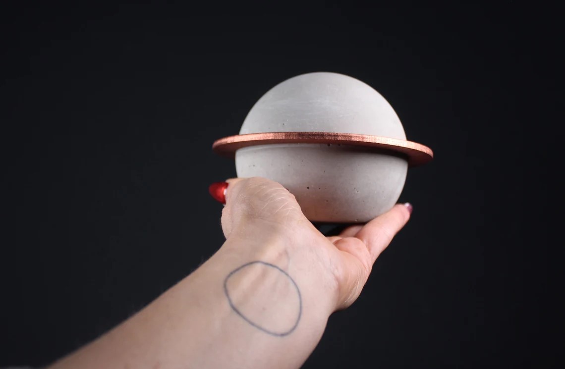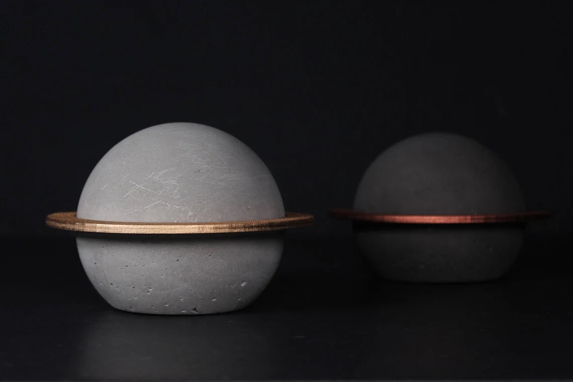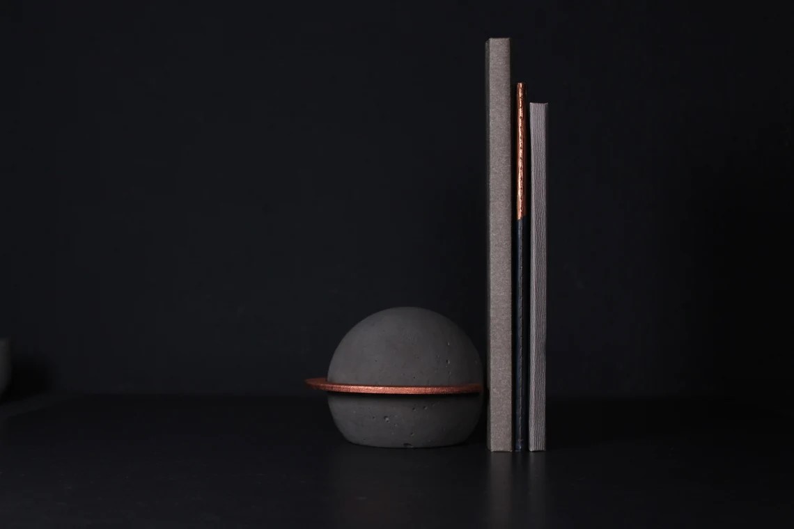 This listing is for concrete Saturn bookend with copper ring by EightPlusE